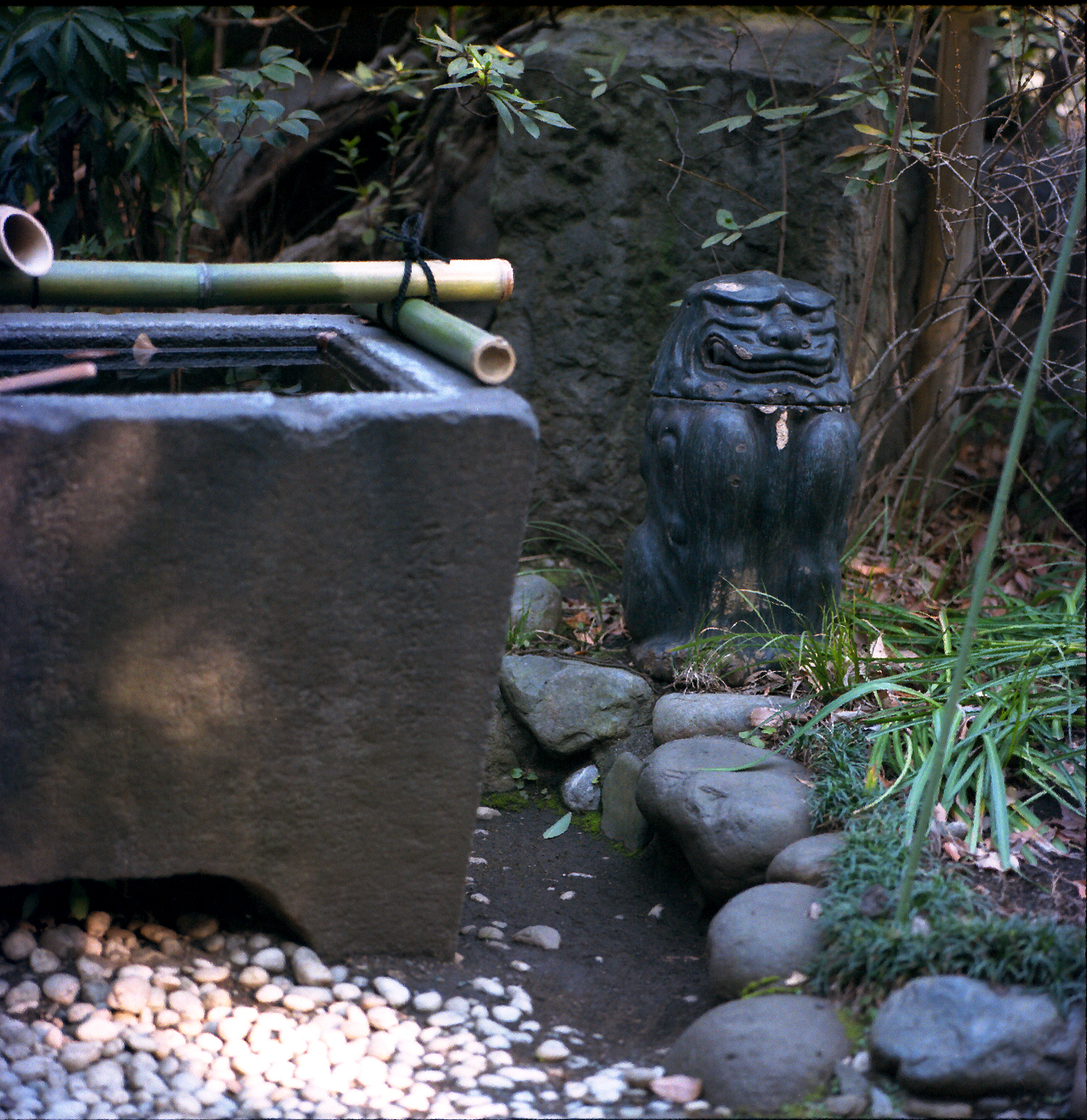手水舎の近くに鎮座する獅子像。調べてみましたが、名称がわかりません。なかなか他で見たことのないユニークな風貌です。
