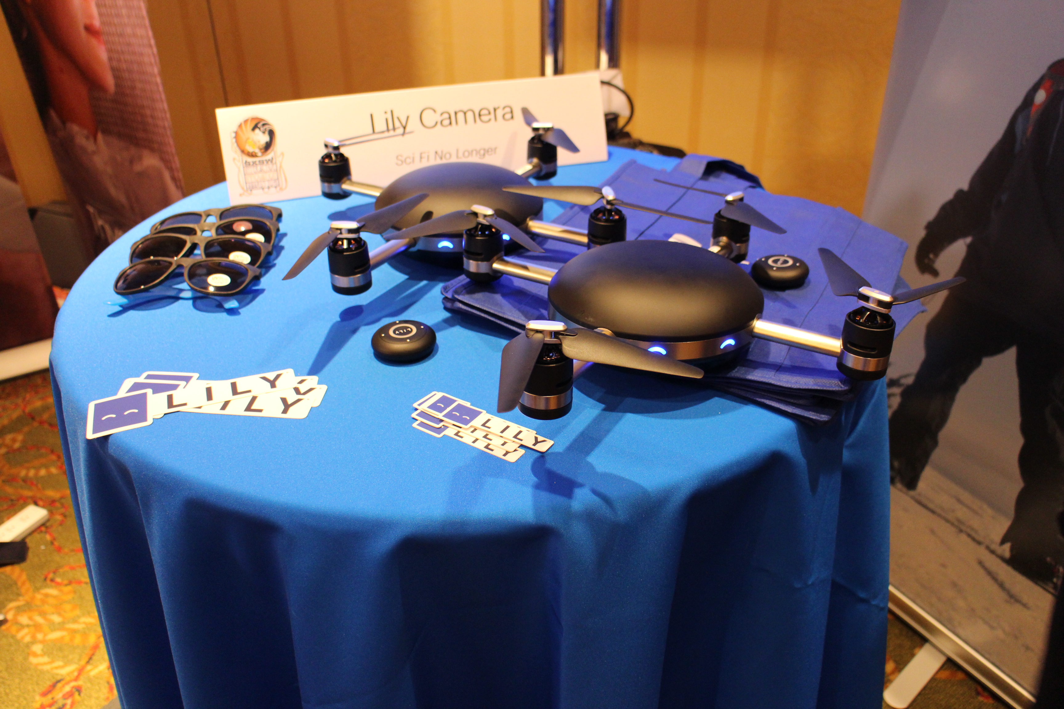 すでにご存知の方も多い自撮りドローンのLilyです。思ったよりは小ぶりでした。空に放つと自動飛行しながら自分を追尾して撮影してくれます。操作はスマホから。もはやSF映画の世界ですね。