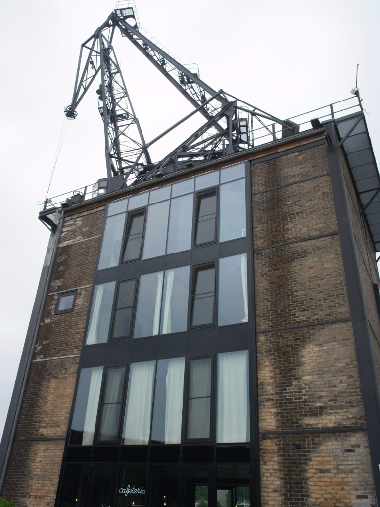カフェも元工場跡をリノベーション。屋上にあるクレーンが特徴的な「クレーン・カフェ」