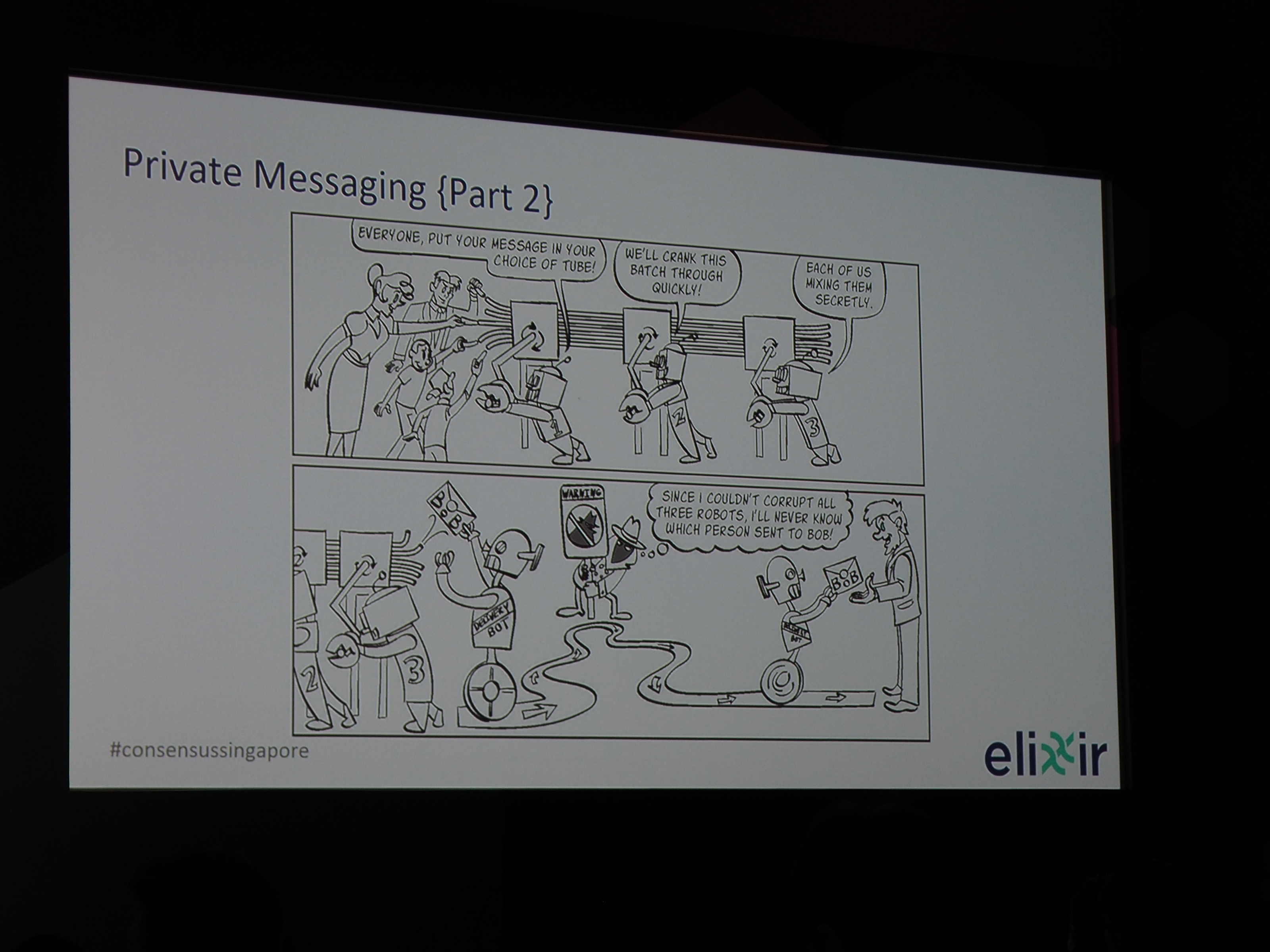 彼のピッチでは、自身の最新のプロジェクト「Elixxir(エリクサー)」の概要を紹介しました。