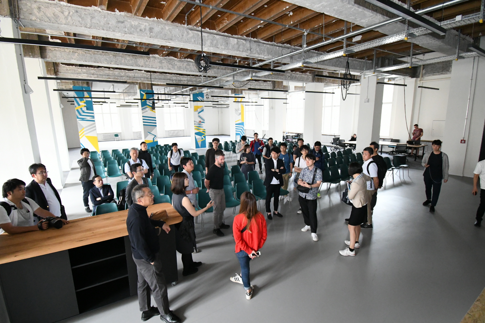 ものすごく広大な敷地に圧倒されっぱなしの、先日オープンしたばかりのモビリティハブ driveryは白眉です。次世代のモビリティ企業の超巨大ハブ。ガレージからスパーコンピューターを導入したコ・ワーキングスペースまで、民間でここまでやるのかという環境を目の当たりにして、参加者の皆さんも圧倒されていました。なお、冒頭に掲示した写真もdriveryのピッチルームです。