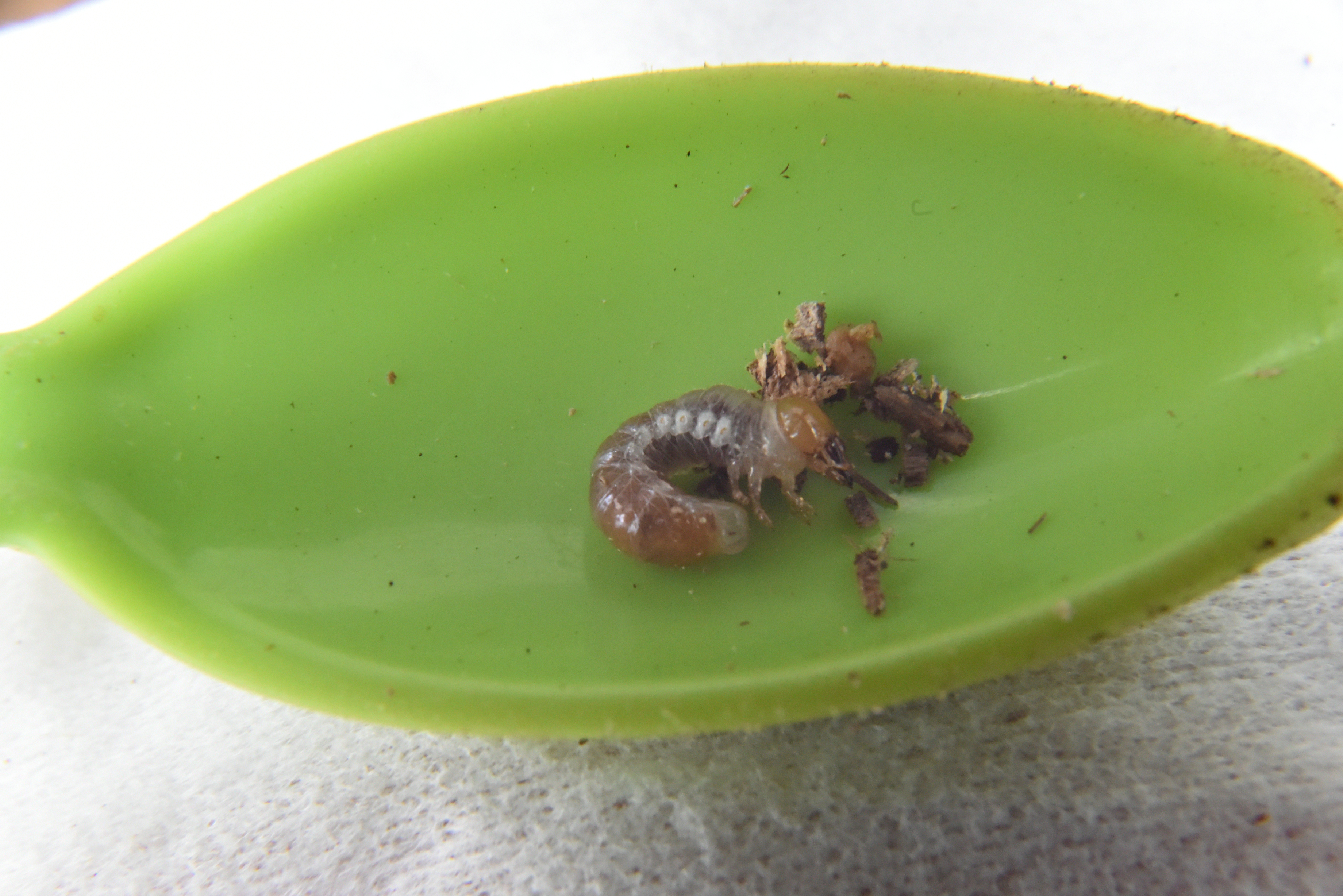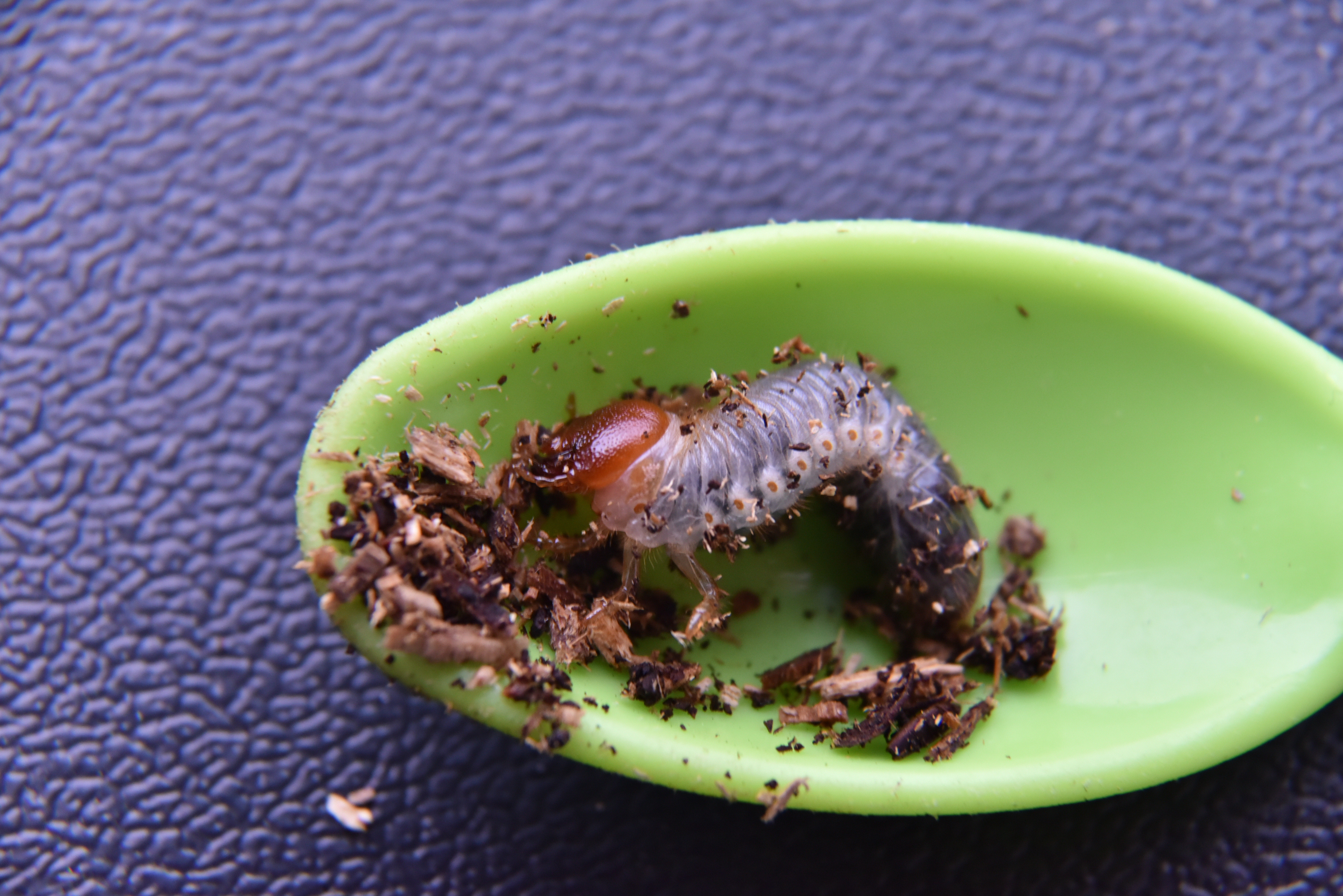 そして、幼虫は今回も可愛かった! 当たり前ですがカブトムシの幼虫とは似ているようで、異なります。コクワ幼虫ですが、25匹を回収しました。
